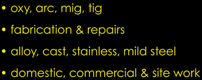 | With over 20 years experience, Weld Mobile provides all your weldingand fabrication requirements. We are fully licensed and insured and provide a mobile service that is second to none. From small repairs to large projects, Weld Mobile is your mobile welding solution. Check out our range of services... ![]() No matter where your are or might be, give us a call and we’ll be happy to discuss your on-site requirements. And remember, we come to you! |